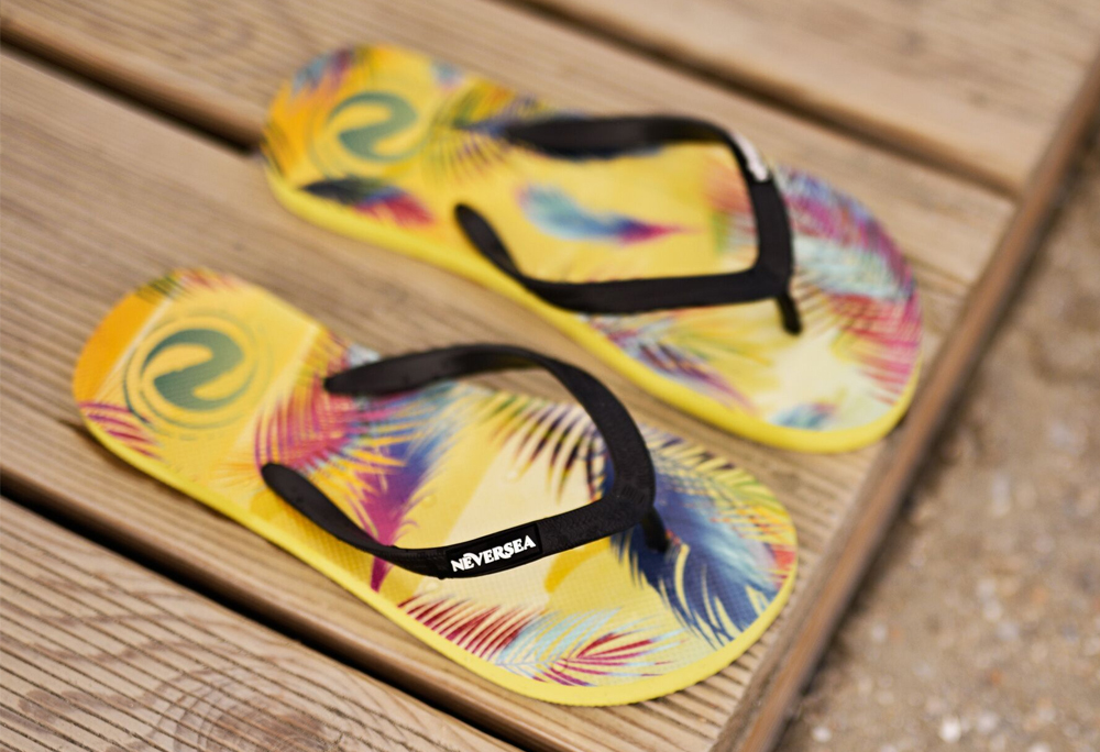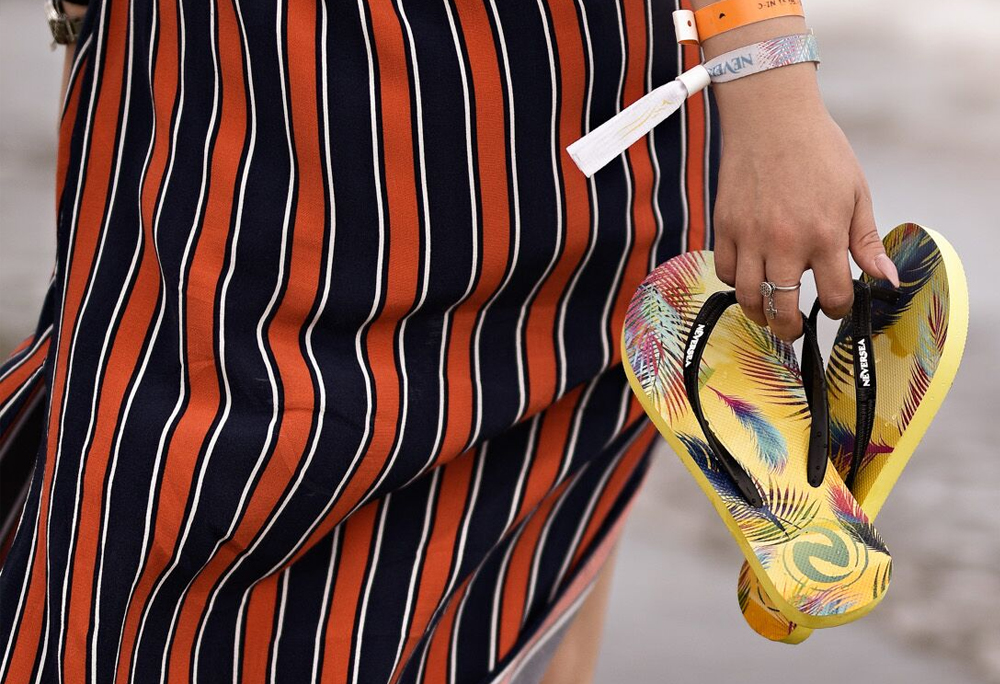 Acesti slapi flip flop sunt o alegere perfecta pentru zilele calduroase de la festivalul NEVERSEA.